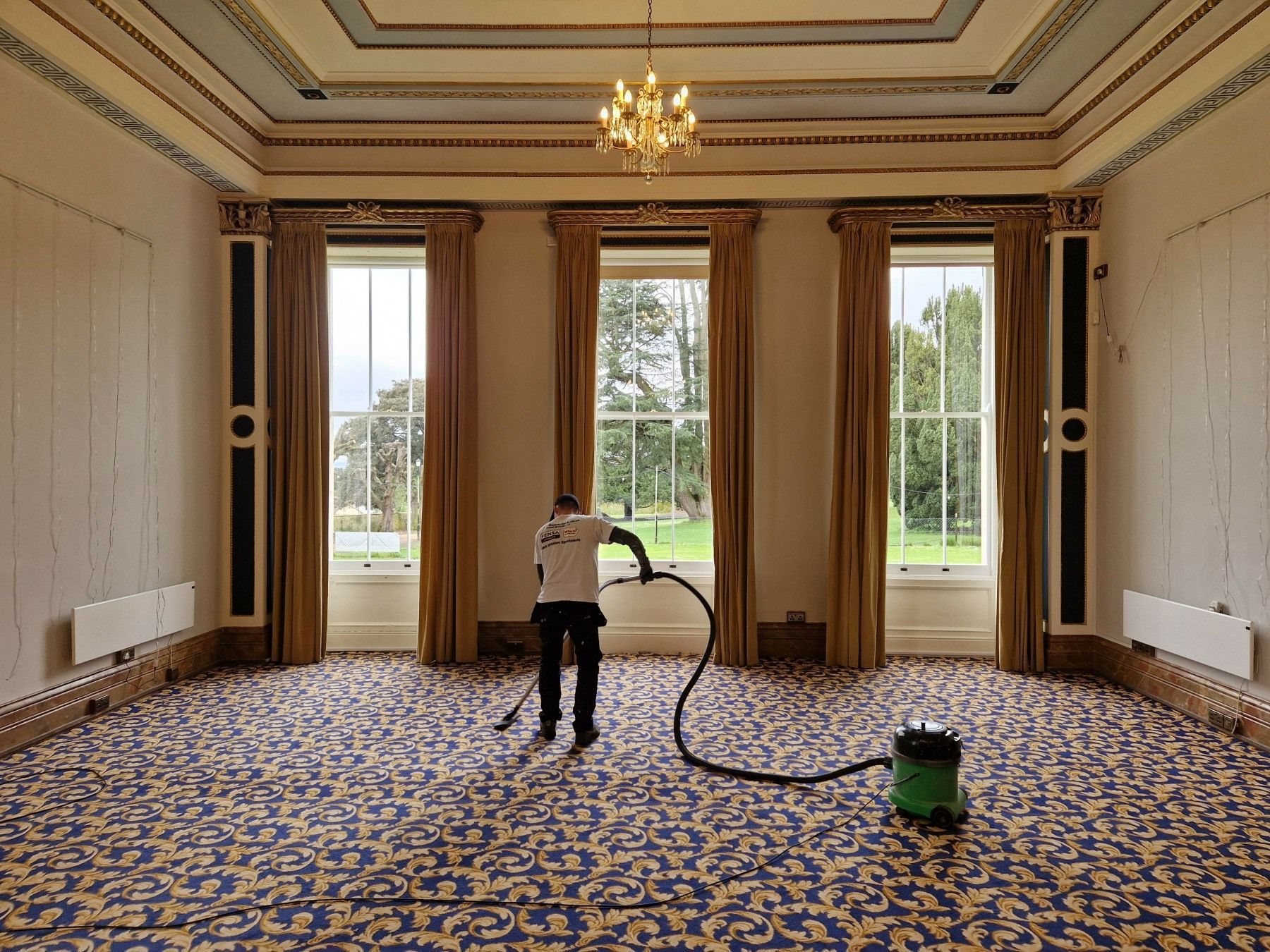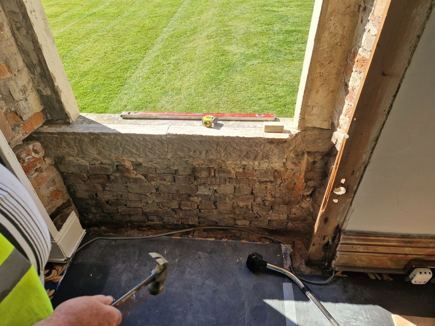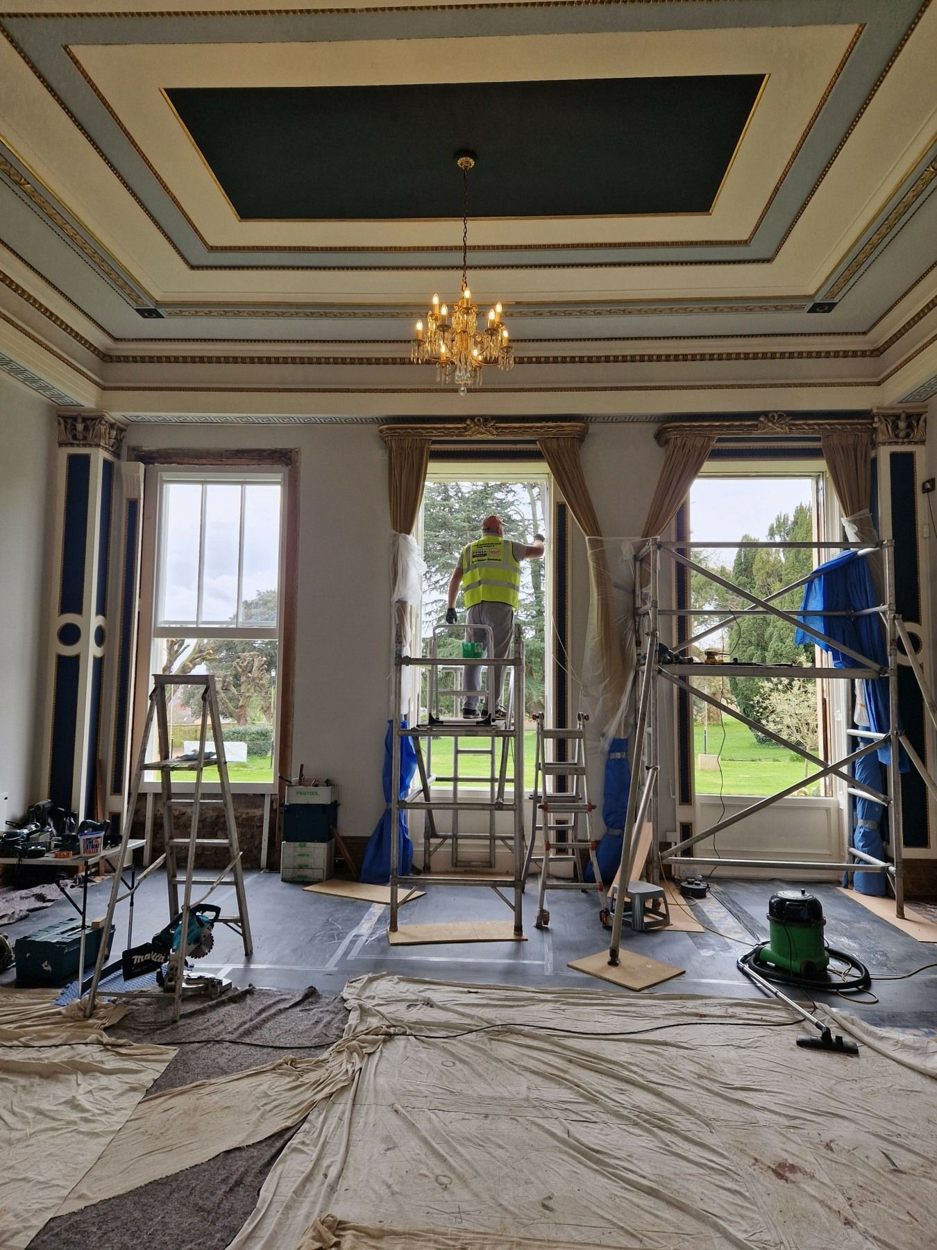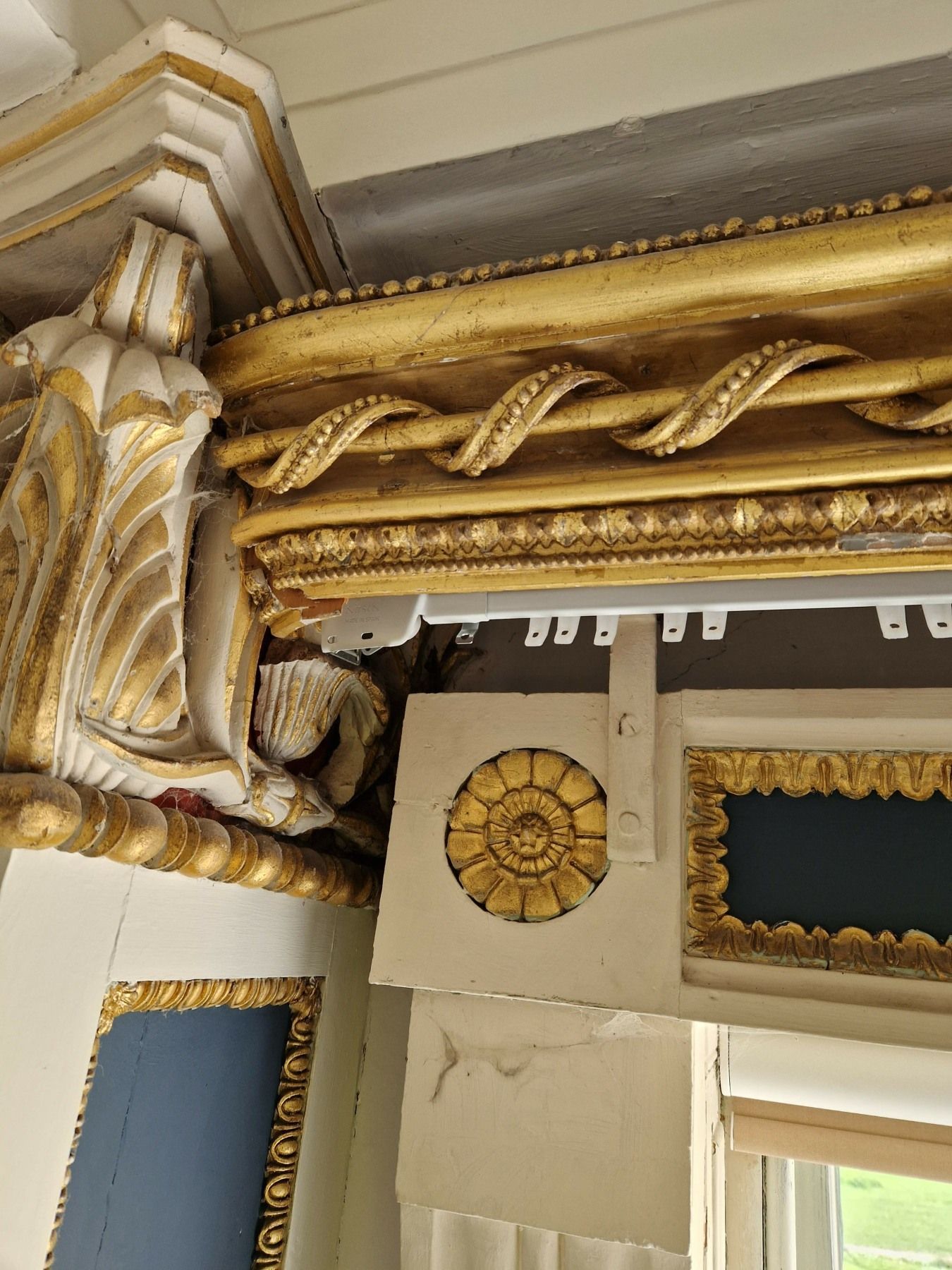 After weeks of meticulous craftsmanship, the new single-glazed Accoya joinery was ready for delivery and installation. The project timeline was tight, with just a one-week window available between scheduled wedding events at Northwood House. Adam and Steve, part of the property maintenance team, played a crucial role in the process, assisting in the removal and cleaning of custom velvet curtains and reinstalling the historic pelmet carvings and trim.